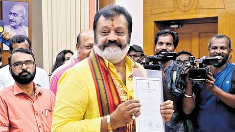 তিনি জানান, ২০০৮ সালের অক্টোবরে তিনি বিজেপিতে যোগ দিয়েছিলেন। পরে ত্রিশুরের মানুষ তাঁকে নির্বাচিত করে সংসদে পাঠান। পরবর্তীতে দলের সিদ্ধান্তেই তাঁকে কেন্দ্রীয় পর্যায়ে দায়িত্ব দেওয়া হয়। বর্তমানে তিনি কেন্দ্রীয় পেট্রোলিয়াম ও প্রাকৃতিক গ্যাস বিষয়ক প্রতিমন্ত্রী এবং পর্যটন প্রতিমন্ত্রী পদে আছেন। প্রসঙ্গত, এর আগেও এক বার সিনেমায় তাঁর দায়বদ্ধতার কথা জানিয়ে মন্ত্রিত্ব থেকে ইস্তফা দেওয়ার ইচ্ছাপ্রকাশ করেছিলেন জনপ্রিয় মালয়ালম অভিনেতা গোপী।