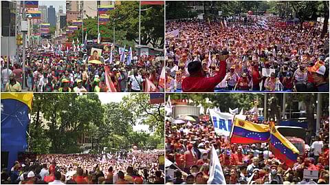 মার্কিন নেতৃত্বাধীন নিষেধাজ্ঞা এবং দেশের আর্থিক ও অ-আর্থিক সম্পদের অবৈধ দখলের বিরুদ্ধে প্রতিবাদ জানাতে হাজার হাজার ভেনিজুয়েলাবাসী রাজধানী কারাকাসের রাস্তায় প্রতিবাদে শামিল হয়েছে।