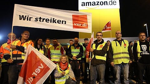 বন, ৩ এপ্রিল: বেতন বৃদ্ধি ও খুচরো বাজারে চুক্তিভিত্তিক স্বীকৃতির দাবিতে ৪ দিনের ধর্মঘট ডেকেছে জার্মানির অ্যামাজন কর্মীরা। অ্যামাজনের বিভিন্ন ওয়্যারহাউসের তরফে গত ২৯ মার্চ থেকে এই ধর্মঘট শুরু হয়েছে। রেইনবার্গ, ওয়ার্নে, কোবলেনজ,লেইপজিগ এবং ব্যাড হারশেলডের দু'টি জায়গার প্রায় ২ হাজার কর্মী এই ধর্মঘটে সামিল হয়েছেন।