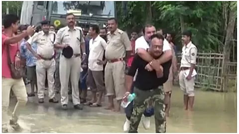 বন্যা কবলিত এলাকা পরিদর্শনে গিয়ে উদ্ধারকর্মীর পিঠে চেপে ঘুরলেন আসামের বিজেপি বিধায়ক। সোশ্যাল মিডিয়ায় এই দৃশ্যের ভিডিও ভাইরাল হতেই নেটিজেনদের তীব্র কটাক্ষের মুখে পড়েছেন আসামের লামডিংয়ের বিধায়ক শিবু মিশ্র।