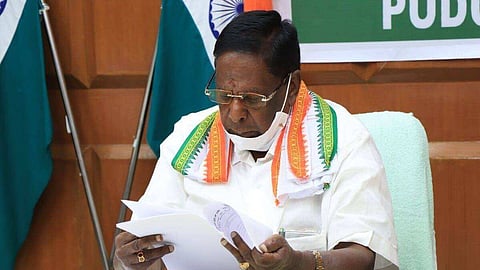 গত কয়েকদিনে কংগ্রেসের ৫ বিধায়ক এবং সরকারকে সমর্থনকারী ডিএমকে-র ১ বিধায়ক ইস্তফা দেওয়ায় ৩৩ আসন বিশিষ্ট বিধানসভায় সংখ্যালঘু হয়ে পড়েছিল কংগ্রেস। একজন নির্দল বিধায়কের সমর্থন সহ কংগ্রেস সরকারের পক্ষে মাত্র ১২জন বিধায়কের (স্পিকার সহ কংগ্রেসের ৯ এবং ডিএমকে-র ২) সমর্থন ছিল। অপরদিকে সরকারের বিপক্ষে রয়েছে ১৪ (বিজেপি - ৩, AIADMK - ৪ এবং AINR Congress - ৭) জন বিধায়ক।