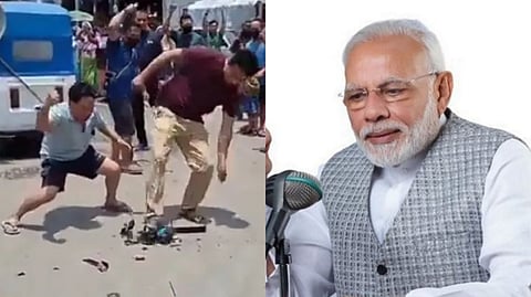 এমনকি বিদ্রোহীরা তাঁর মন্ত্রিসভার সদস্য বিদেশ প্রতিমন্ত্রী রাজকুমার রঞ্জন সিং-এর বাড়ি পুড়িয়ে দিলেও এ নিয়ে কোনও কথা তুললেন না প্রধানমন্ত্রী। এই মৌনতায় ব্যাপক ক্ষুব্ধ মণিপুরবাসী রবিবার প্রধানমন্ত্রীর মাসিক রেডিও প্রোগ্রাম ‘মন কী বাত’ চলাকালীনই রাস্তায় নেমে প্রতিবাদ দেখালেন। রাজপথে আছাড় মেরে ভাঙেন ট্রানজিস্টার রেডিও। পোস্টার হাতে স্লোগান দিয়ে মিছিল করেন, মশাল নিয়ে মানববন্ধন করেন। এমনকি ‘মন কী বাত’ শুনবেন না বলে কানে হাত দিয়েও এদিন বিক্ষোভ দেখান রাজ্যবাসী।