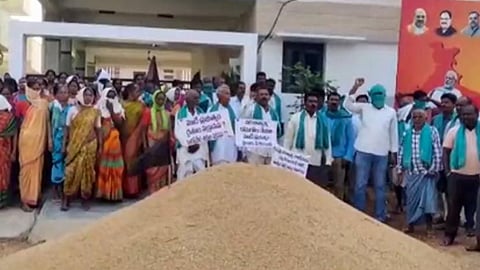 বিজেপি সাংসদের বাড়ির সামনে নিজেদের চাষ করা ধান ফেলে রেখে বিক্ষোভ দেখালেন তেলেঙ্গানার কিছু কৃষক। তেলেঙ্গানার নিজামবাদ জেলার কিছু কৃষক মঙ্গলবার বিজেপি সাংসদ ধরমপুরী অরবিন্দের বাসভবনের সামনে ধান ফেলে দেয়। ধান সংগ্রহে কেন্দ্রের অস্বীকৃতির প্রতিবাদে তাঁদের এই বিক্ষোভ বলে জানা গেছে।