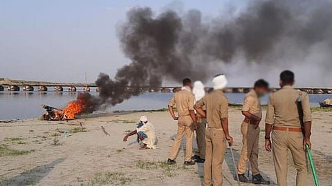 নিয়ম মেনে মৃতদেহ দাহ করা হচ্ছে না। এই অভিযোগে ৫ জন পুলিশকর্মীকে সাসপেন্ড করা হল। এই ঘটনায় আরও একবার মুখ পুড়ল উত্তরপ্রদেশের রাজ্য সরকারের। এর আগে উত্তরপ্রদেশে নদীতে একের পর এক মৃতদেহ ভেসে আসার ঘটনায় গোটা দেশজুড়ে সমালোচনার ঝড় বয়েছিল। এবারও অভিযোগের আঙুল উঠল রাজ্যে পুলিশের দিকে।