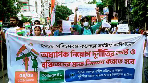 ‘পশ্চিমবঙ্গ কলেজ সার্ভিস কমিশনের (WBCSC) নিয়োগে দুর্নীতি হয়েছে। সেই দুর্নীতির তথ্যসহ ১২২ জনের তালিকা মুখ্যমন্ত্রী মমতা বন্দ্যোপাধ্যায়, শিক্ষামন্ত্রী ব্রাত্য বসুকে জানালেও, তাঁরা কোনও পদক্ষেপ নেয়নি। নীরবে দুর্নীতিকে প্রশয় দিচ্ছেন তাঁরা।’ শুক্রবার, কলেজ স্ট্রীটে বিক্ষোভ দেখানোর সময় এমনই অভিযোগ করেন ২০১৮ কলেজ সার্ভিস কমিশন (CSC)-এর মেধাতালিকা ভুক্ত চাকরিপ্রার্থীরা।