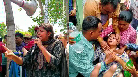 ডিওয়াইএফআই, এসএফআই সহ বাম যুব সংগঠনের নেতৃত্বে শনিবারের বিক্ষোভ মিছিল যাওয়ার কথা ছিল এসএসসি ভবনের সামনে। এরপর তাঁদের স্কুল সার্ভিস কমিশনকে একটি ডেপুটেশন জমা দেওয়ার কর্মসূচি ছিল। কিন্তু এদিন দুপুরে ডিওয়াইএফআই-এর রাজ্য সম্পাদক মিনাক্ষী মুখোপাধ্যায়ের নেতৃত্বে সেই বিক্ষোভ মিছিল সল্টলেক এসএসসি ভবনের সামনে পৌঁছাতেই পুলিশি বাধার মুখে পড়ে।