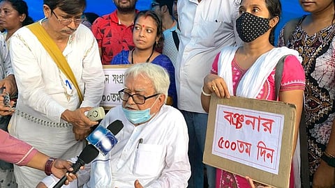 বুধবার ধর্মতলার মেয়ো রোডে ৫০০ দিনে পড়ল এসএসসি চাকরি প্রার্থীদের ধর্না। এদিন ধর্না মঞ্চে উপস্থিত ছিলেন বামফ্রন্ট চেয়ারম্যান বিমান বসু। ঐ মঞ্চ থেকেই শিক্ষক নিয়োগ দুর্নীতির জন্য তিনি মুখ্যমন্ত্রী মমতা ব্যানার্জীকে দায়ী করলেন।