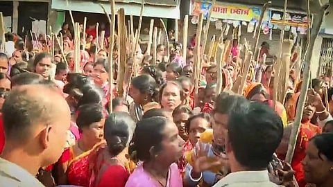বুধবার বিকেলে শেখ শাহজাহানের 'নিজস্ব বাহিনী'কে তাড়িয়ে দেওয়ার পর অনেকটাই সাহস ফিরে পেয়েছেন সন্দেশখালির বাসিন্দারা। বৃহস্পতিবার সকালে লাঠি, বাঁশ নিয়ে পথে নামেন তাঁরা। স্থানীয় তৃণমূল নেতা শাহজাহান, শিবুপ্রসাদ ও উত্তম সর্দারের গ্রেফতারির দাবিতে থানা ঘেরাও করেন তাঁরা।