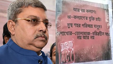 কল্যাণ বনাম অভিষেকের যুদ্ধ থেমেও থামছে না। এবার সারা হুগলিতে কল্যাণ বন্দ্যোপাধ্যায়ের বিরুদ্ধে পোস্টার পড়ল। কোনও পোস্টারে লেখা হয়েছে, ‘শ্রীরামপুরের জন্য নতুন সাংসদ’। কোনও পোস্টারে লেখা, ‘দিদি তুমি বিচার কর, দাদা তুমি বিচার কর। মানুষ চায় বিচার হোক, এই পাপের মুক্তি দাও’। আবার কোনও পোস্টারে লেখা রয়েছে, ‘আর নয় কল্যাণ, অ-কল্যাণের মুক্তি চাই। সুস্থ শহর, পরিচ্ছন্ন মানুষ চাই। নেশাখোর- তোলাবাজ- চরিত্রহীন আর নয়, আর নয়।’