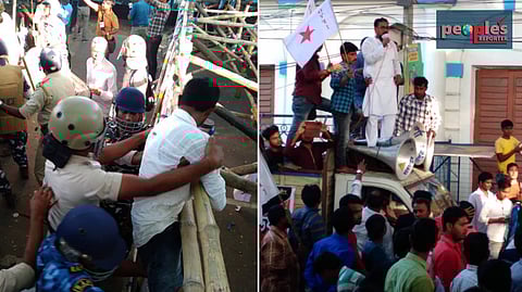বাম ছাত্র-যুব সংগঠন DYFI-SFI-র এসপি অফিস অভিযান ঘিরে ধুন্ধুমার পরিস্থিতি মুর্শিদাবাদের বহরমপুরে। চাকরিপ্রার্থীর আত্মহ্যতার নিরপেক্ষ তদন্ত করে দোষী ব্যক্তিদের শাস্তির দাবিতে ও জেলা জুড়ে বামপন্থী কর্মীদের মিথ্যা মামলায় ফাঁসানোর প্রতিবাদে SP অফিস অভিযান।