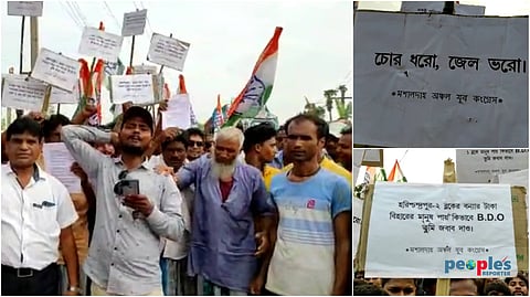 বন্যার ত্রাণে দুর্নীতির অভিযোগ এনে মশালদহ গ্রামপঞ্চায়েতের কংগ্রেস কর্মীরা বিক্ষোভ দেখান। তাঁদের অভিযোগ ২০১৭ সালের বন্যার ত্রাণের টাকা লুঠ করেছে তৃণমূল।