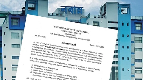 কেন্দ্রীয় সরকারের শ্রম কোড বাতিল, সরকারের জন-বিরোধী, কৃষক-বিরোধী নীতির বিরুদ্ধে ৯ জুলাই বনধের ডাক দিয়েছে সিটু, এআইটিইউসি, আইএনটিইউসি সহ ১০ টি কেন্দ্রীয় শ্রমিক সংগঠন ও ফেডারেশন। নবান্নের পক্ষ থেকে সেই বনধের বিরোধিতা করে সোমবার নির্দেশিকা প্রকাশ করা হয়েছে। নির্দেশিকা অনুযায়ী, ওইদিন কোনো সরকারি কর্মী ক্যাজুয়াল লিভ নিতে পারবে না। এমনকি অর্ধদিবসও ছুটি নেওয়া যাবে না। নির্দেশিকা অনুযায়ী, বুধবার কোনোও কর্মী অফিসে না গেলে, তাঁর বেতন কাটা যাবে। এমনকি ওই দিনটি ওই সংশ্লিষ্ট ব্যক্তির কর্মজীবন থেকে বাদ দেওয়া হবে।
