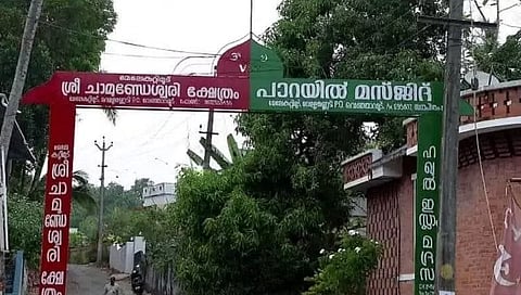ঘটনাটি কেরালার। থিরুবনন্তপুরমের ভেঞ্জারামুডুতে এই মন্দির ও মসজিদ অবস্থিত। যেখানে একই তোরণের অর্ধেক অংশে লেখা মেলেকুট্টিমুডু শ্রী চামুন্ডেশ্বরী মন্দিরের নাম এবং বাকি অর্ধেক অংশে পারায়িল মসজিদের নাম। মন্দির ও মসজিদের তোরণ ভাগাভাগি নিয়ে কোনও বিতর্কের সৃষ্টি হয়নি।