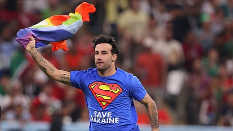 এ যেন এক অন্যরকম বিশ্বকাপ। বিভিন্ন বিষয়ে প্রতিবাদ, সমর্থন বার বার ধরা পড়ছে মিডিয়াতে। রোনাল্ডো-সুয়ারেজদের ম্যাচও তার সাক্ষী থাকল। ম্যাচের ৫০ মিনিটে একজন ব্যক্তি হাতে ওয়ান লাভের প্রতীক রামধনু পতাকা নিয়ে মাঠে দৌড়াতে থাকেন। তাঁর টি-শার্টের পেছনে লেখা ছিল ‘ইরানের মহিলাদের জন্য সম্মান’ এবং সামনে লেখা ছিল ‘ইউক্রেনকে বাঁচাও’। সাথে সাথে তাঁকে নিরাপত্তারক্ষীরা মাঠ থেকে সরিয়ে নিয়ে যান। ইতালির সংবাদমাধ্যম সূত্রে খবর, ওই ব্যক্তির নাম মারিও ফেরি।