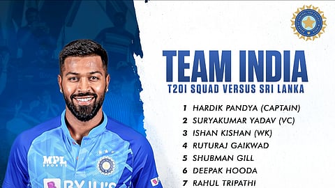 হার্দিক পাণ্ডিয়া (অধিনায়ক), ঈশান কিষাণ(উইকেটকিপার), রুতুরাজ গায়কোয়াড়, শুবমন গিল, সূর্যকুমার যাদব (সহ-অধিনায়ক), দীপক হুডা, রাহুল ত্রিপাঠি, সঞ্জু স্যামসন, ওয়াশিংটন সুন্দর, যুজবেন্দ্র চাহাল, অক্ষর প্যাটেল, আর্শদীপ সিং, হর্ষল প্যাটেল, উমরান মালিক, শিবম মাভি, মুকেশ কুমার।