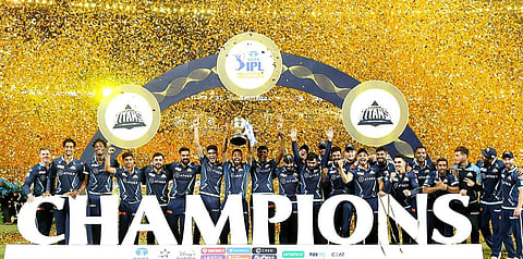অভিষেক মরশুমেই ইন্ডিয়ান প্রিমিয়াম লীগের খেতাব জিতে নিলো হার্দিক পান্ডিয়ার গুজরাট টাইটানস। আমেদাবাদে বিশ্বের বৃহত্তম ক্রিকেট স্টেডিয়ামে আইপিএলের প্রথম সংস্করণের বিজয়ী দল রাজস্থান রয়্যালসকে ৭ উইকেটে হারিয়ে ২০২২ সালের খেতাব জিতলো গুজরাট। বল হাতে হার্দিক পান্ডিয়া, সাই কিশোরদের দাপুটে প্রদর্শনে ১৩০ রানই সংগ্রহ করতে পেরেছিলেন সঞ্জু স্যামসনরা। জবাবে ব্যাট করতে নেমে শুবমন গিলের অপরাজিত ৪৫* রান এবং ডেভিড মিলারের ৩২* রানের ঝড়ো ইনিংসের দৌলতে ১১ বল হাতে রেখেই জয় তুলে নেয় গুজরাট।