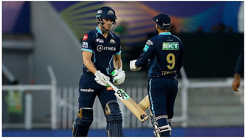 লক্ষ্যমাত্রা তাড়া করতে নেমে দ্বিতীয় দফায় শুরুটা নিজেদের মতোই করেন শুবমন গিল এবং ঋদ্ধিমান সাহা। প্রথম উইকেটে ৫১ রান যোগ করেন এই জুটি। ঋদ্ধিমান ২২ বলে ২৯ রান করে ফিরে যাওয়ার অল্প সময় বাদেই শুবমন ২৮ বলে ৩১ রান করে ফিরে যান। এরপর মিডিল অর্ডারে হার্দিক পান্ডিয়া(৩) ও সাই সুদর্শন(২০) দ্রুত আউট হয়ে ফিরে গেলে কিছুটা স্বস্তি বোধ করেছিলো আরসিবি। তবে এরপর রাহুল টিওয়াটিয়া এবং ডেভিড মিলার আরসিবি শিবিরকে ফের অন্ধকারে ঢেকে দেন।
