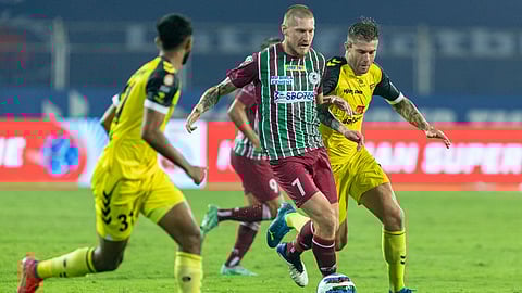 চলতি আইএসএলে নিজেদের নবম ম্যাচে জয় পেলে এটিকে মোহনবাগান পৌঁছে যেতো লীগ টেবিলের শীর্ষে। প্রতিপক্ষ হায়দরাবাদ অবশ্য ড্র করলেই শীর্ষস্থান নিশ্চিত করতো। দুই বনাম চারের হাইভোল্টেজ লড়াইয়ে দুই অর্ধে এগিয়ে থেকেও তিন পয়েন্ট পকেটে পুরতে পারলেন না জুয়ান ফেরান্ডো। ম্যাচ শেষ হয়েছে ২-২ গোলে ড্রয়ের মাধ্যমে। ফলস্বরূপ টানা আট ম্যাচে অপরাজিত থেকে লীগ টেবিলের শীর্ষে পৌঁছে গিয়েছে ম্যানুয়েল মার্কুইজের হায়দরাবাদ এফসি। অন্যদিকে এক পয়েন্ট নিয়ে লীগ টেবিলের তৃতীয় স্থানে উঠে এসেছে মেরিনার্সরা।