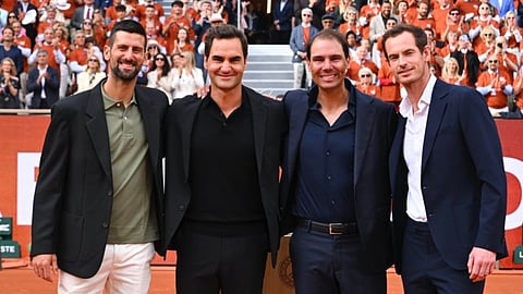 'ক্লে কোর্টের রাজা' রাফায়েল নাদালের বিদায়ী অনুষ্ঠানে আবেগঘন মুহূর্তের সাক্ষী থাকল গোটা টেনিস বিশ্ব। রোলাঁ গারোতে সকলকে চোখের জলে বিদায় জানালেন ১৪ বারের ফরাসি ওপেন চ্যাম্পিয়ন নাদাল। তাঁকে সম্মান জানাতে উপস্থিত ছিলেন নোভাক জকোভিচ, রজার ফেডেরার এবং অ্যান্ডি মারে।