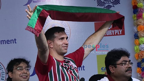 বিশ্বকাপ জেতার পরে মার্টিনেজ কিলিয়ান এমবাপের উদ্দেশ্য খারাপ ভঙ্গি করেন যা নিয়ে বিতর্ক হয়। যদিও মার্টিনেজ এদিন জানালেন এমবাপে তাঁর খুব ভালো বন্ধু। তিনি এও বলেন, ভালো লাগছে কলকাতায় এসে। জানতাম না ভারতে এতো ফুটবল সমর্থক আছে। আমাকে ভালোবাসার জন্য ধন্যবাদ। এদিন ইস্টবেঙ্গল ও মোহনবাগান কর্তারা মার্টিনেজকে তাঁদের ক্লাবের উত্তরীয় পড়িয়ে বরণ করিয়ে নেন। পাশাপাশি ইস্টবেঙ্গলের ইলিশ আর মোহনবাগানের চিংড়ি তাঁকে দেওয়া হয়।