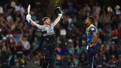 সিডনিতে টসে জিতে প্রথমে ব্যাট করার সিদ্ধান্ত নেয় নিউজিল্যান্ড। শুরুতেই এদিন বড় বিপাকে পড়েছিল কিউইরা। মাত্র ১৫ রানের মধ্যেই ফিন অ্যালান (১), ডেভন কনওয়ে (১) এবং উইলিয়ামসন ফিরে গিয়েছিলেন। টপ অর্ডারের ব্যর্থতার পর শ্রীলঙ্কার ত্রাতার ভূমিকায় অবতীর্ণ হন গ্লেন ফিলিপস। নিউজিল্যান্ডের হয়ে চার নম্বরে ব্যাট করতে নেমে তিনি ১০টি চার ও ৪টি ছক্কার সাহায্যে ৬৪ বলে ১০৪ রানের অনবদ্য ইনিংস খেলেন।