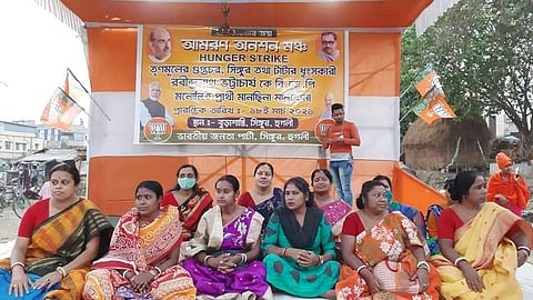 এদিকে, বৃহস্পতিবার সন্ধ্যায় সিঙ্গুরে দলীয় প্রার্থী রবীন্দ্রনাথ ভট্টাচার্যের প্রার্থীপদ বাতিলের দাবিতে আমরণ অনশনে বসেন বিজেপির আটজন স্থানীয় সংগঠনের পদাধিকারী। তাঁদের দাবি, তাঁদের সঙ্গে সিঙ্গুরে ২৭৭টি বুথের সভাপতি, সিঙ্গুরে দলের জেলা কমিটির তিন সহ-সভাপতি এবং রাজ্য কমিটির স্থানীয় তিন সদস্য-সহ প্রত্যেক পদাধিকারী রয়েছেন। ঘটনাস্থল সিঙ্গুর স্টেশন লাগোয়া বুড়োশান্তি মাঠে তৈরি মঞ্চ।