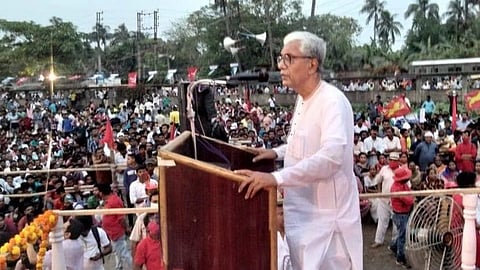 বিজেপির ডবল ইঞ্জিনের সরকারের ধারণাকে কটাক্ষ করে মানিক সরকার বলেন, ত্রিপুরা জঙ্গলের রাজত্বে পরিণত হয়েছে। বিজেপি আসলে মানুষের প্রতিবাদী কণ্ঠরোধ করতে চাইছে। বেকারদের সংখ্যা বাড়ছে, মানুষ অনাহারে মারা যাচ্ছে, সরকারি হাসপাতাল চিকিৎসা পরিষেবা পাওয়া যাচ্ছে না। একটাও প্রতিশ্রুতি পূরণ করতে পারেনি বিজেপি। হীরে দিয়ে রাজ্য সাজানোর আশ্বাস দিয়েছলেন প্রধানমন্ত্রী। কিন্তু এখন মানুষ বুঝতে পারছেন। ভয়াবহ পরিস্থিতির মধ্যে দিন কাটাচ্ছেন তাঁরা।